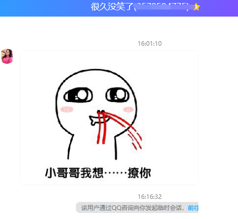 点击QQ强制对话,就会让你选择对话的QQ,一般我们选择自己的QQ,接下来就会弹出对话框,只需要正常对话即可,我们两个同事的QQ测试如下图