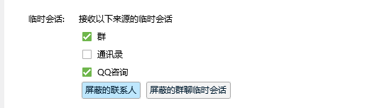 默认我们的QQ临时会话功能是开启的,但是只要把勾去掉,别人就不会给你发信息了。